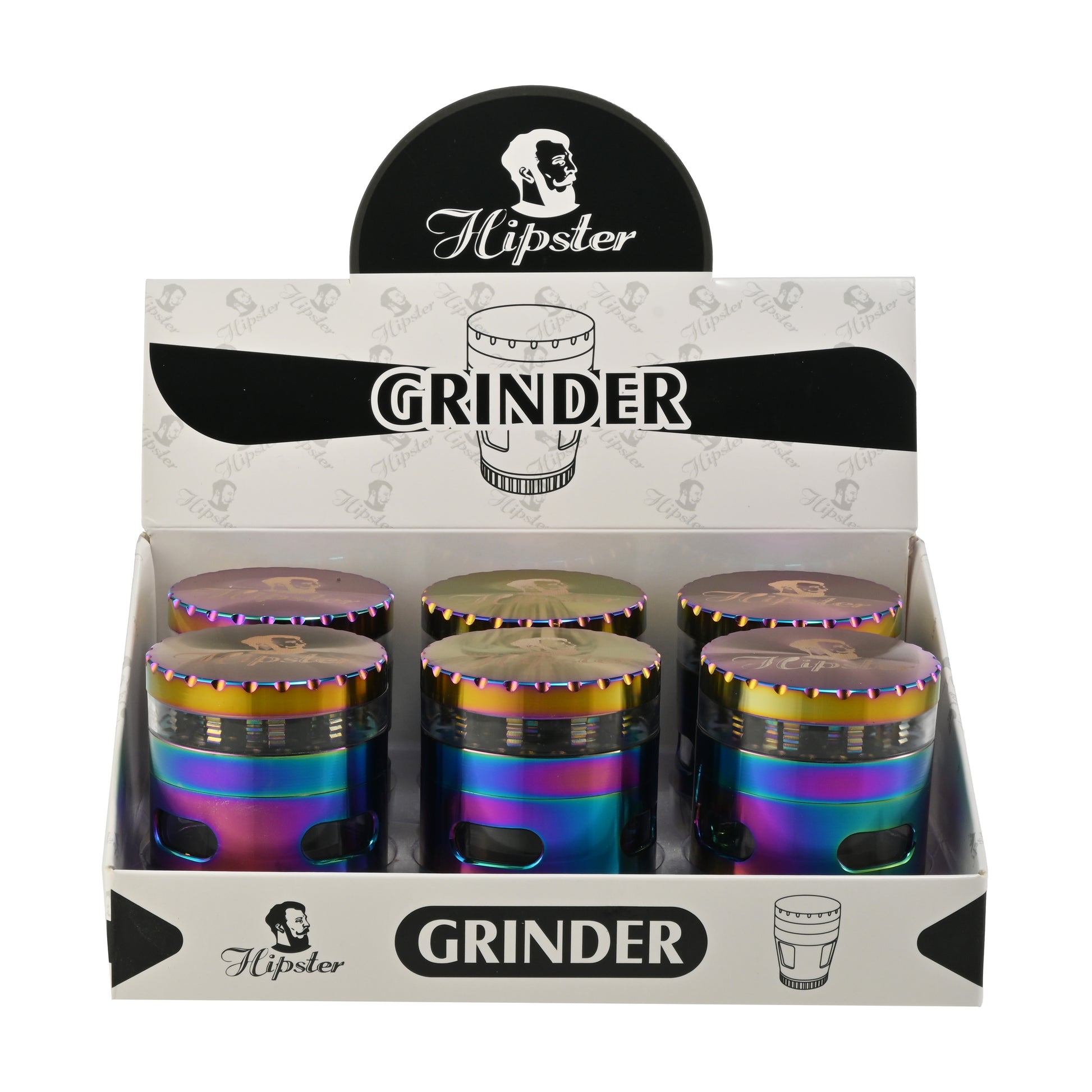 This sleek 62x68mm zinc alloy grinder boasts a vibrant iridescent finish. Equipped with sharp teeth, a mesh screen, and a clear chamber, it offers smooth grinding and easy herb collection. Featuring the iconic Hipster logo, it's the perfect blend of style and efficiency for everyday use